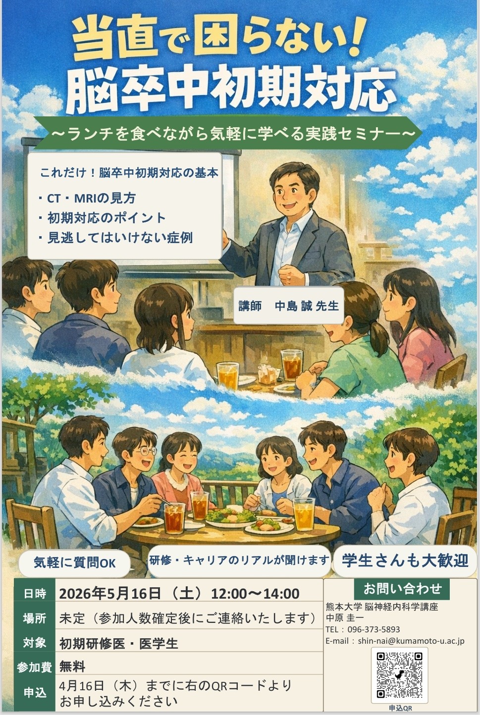 4月16日(木)までに、以下のQRコードまたは医局秘書メール宛にお申し込みください。